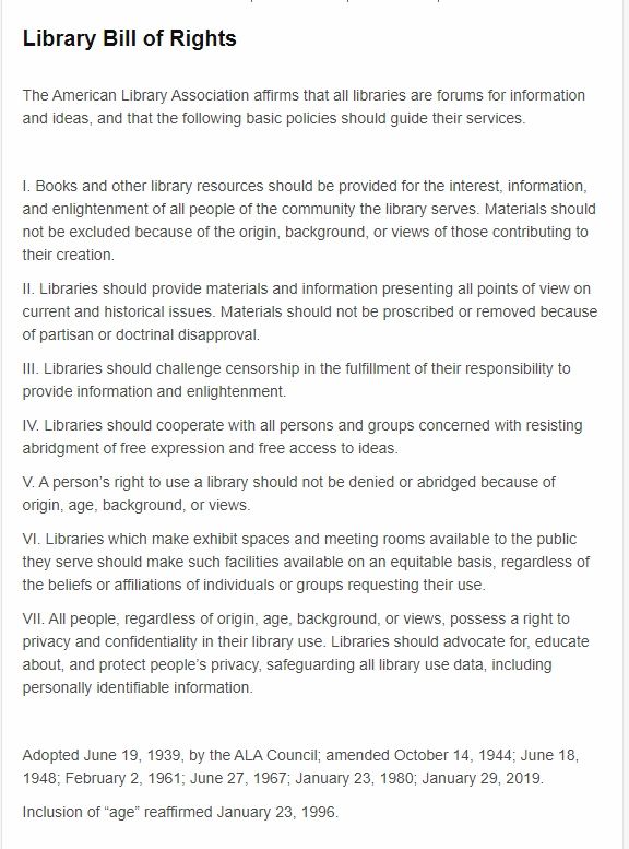 "Library Bill of Rights", American Library Association, June 30, 2006.